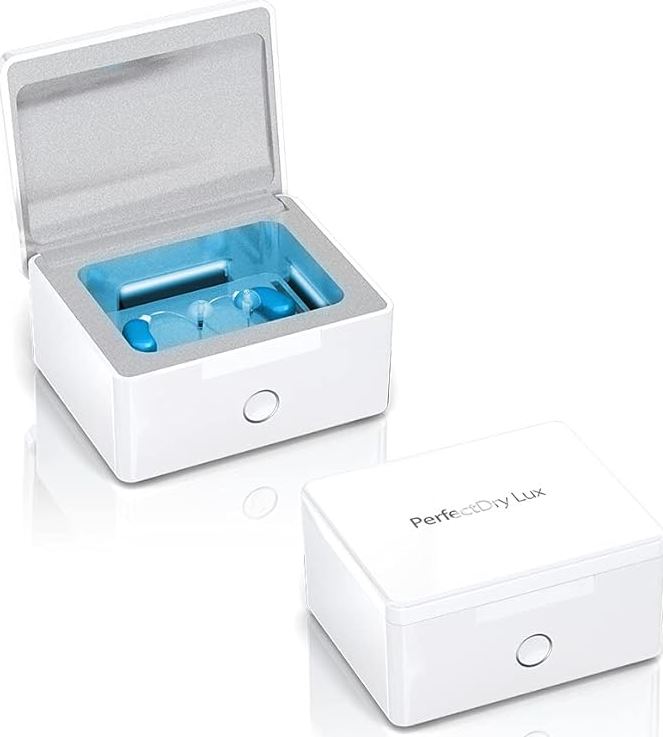 - Suitable for all types of hearing aids, including behind‑the‑ear (BTE), in‑the‑ear (ITE), receiver‑in‑canal (RIC) and custom models from any manufacturer. It gently dries and sanitises devices using warm air and built‑in UV‑C light to help protect against moisture damage and bacteria build-up.